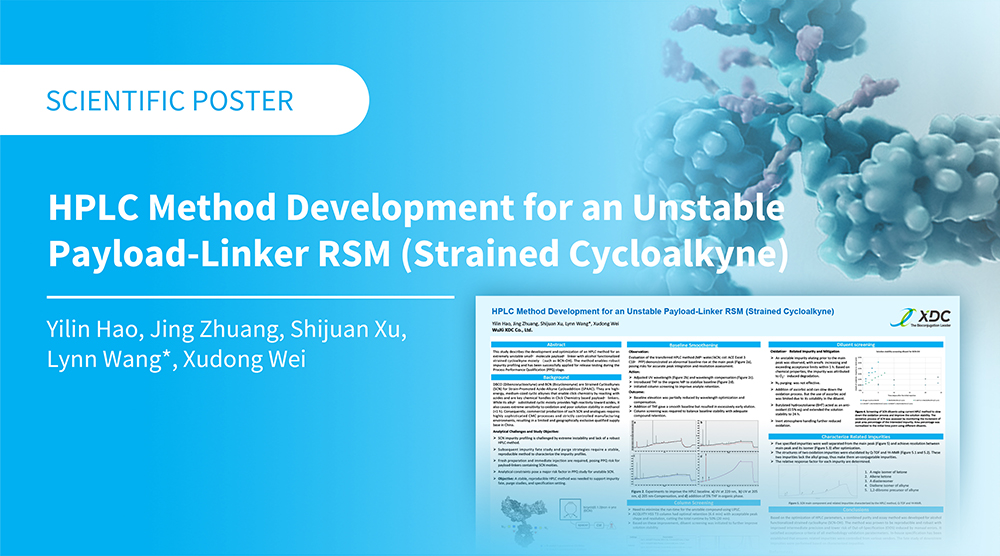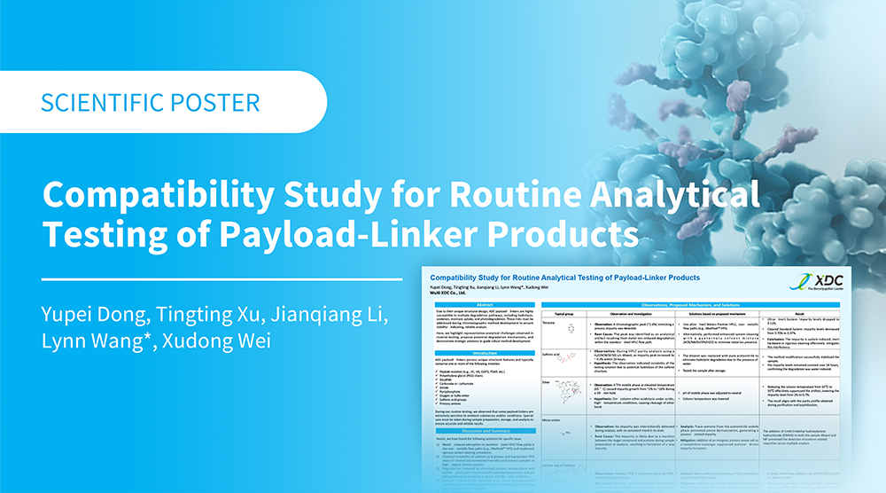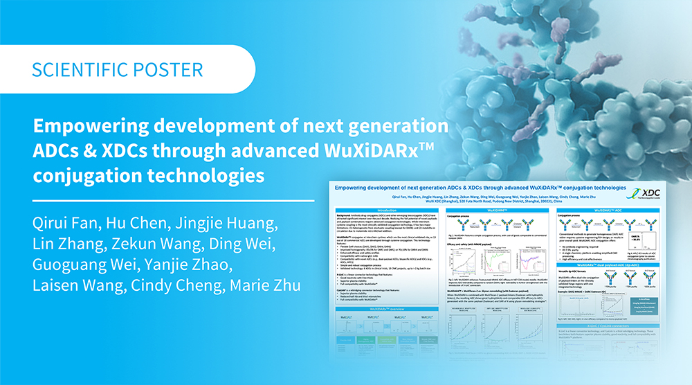 Throughout all stages of your product development, WuXi XDC utilizes industry proven platforms to ensure cost-effective and robust execution of your project needs while also driving innovation to provide greater efficiency, lower the cost of goods and deliver safer, more efficacious, and higher quality bioconjugates. The following scientific posters, presented at various industry trade events and conferences, provide a snapshot of our various technology platforms and services to help you better reach your discovery, development, and clinical or commercial manufacturing goals.